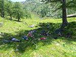 Nach dieser herrlichen Pause ging es noch ein Stückchen bergauf, dann dem Ziel, dem Hotel Col de Forclaz, entgegen nur noch den Berg hinunter. Hinter einer Kurve stand eine riesige Lärche, ein Schattenspender par excellence. Prima, um ein kleines Verdauungsnickerchen einzulegen. Ja, so erholsam kann Wandern sein.